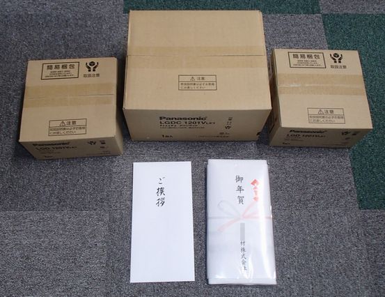 先日、当社が材料を仕入れている電材屋さんから、初荷が届きました。